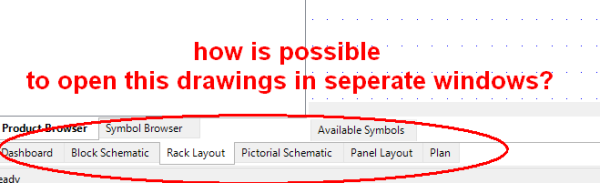 Currently it is possible only to have one window, and therefore one view (e.g. a drawing, or the Products View, Cables View etc), open for a Project at any one time.