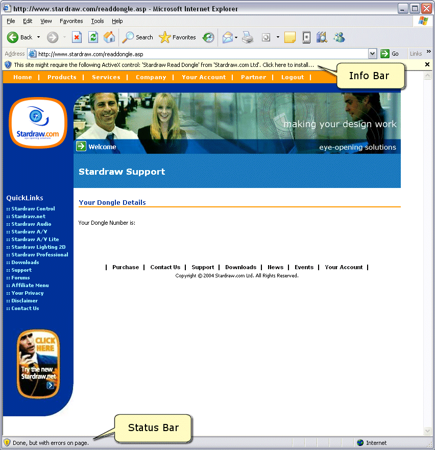 The file you download from our website is an installation program - when you run it it will install certain settings then call a browser, take you to the Stardraw website, and complete the installation online.