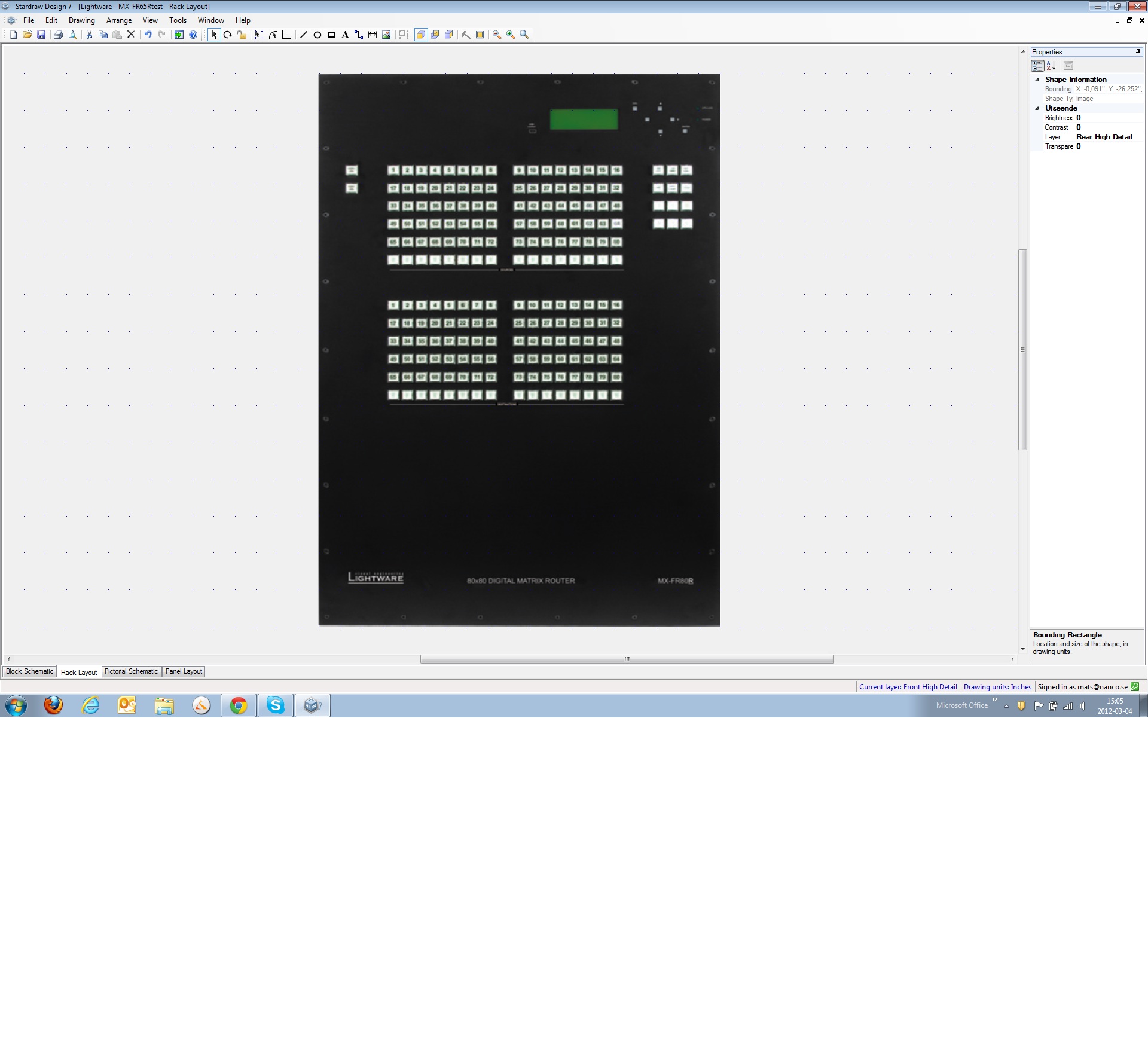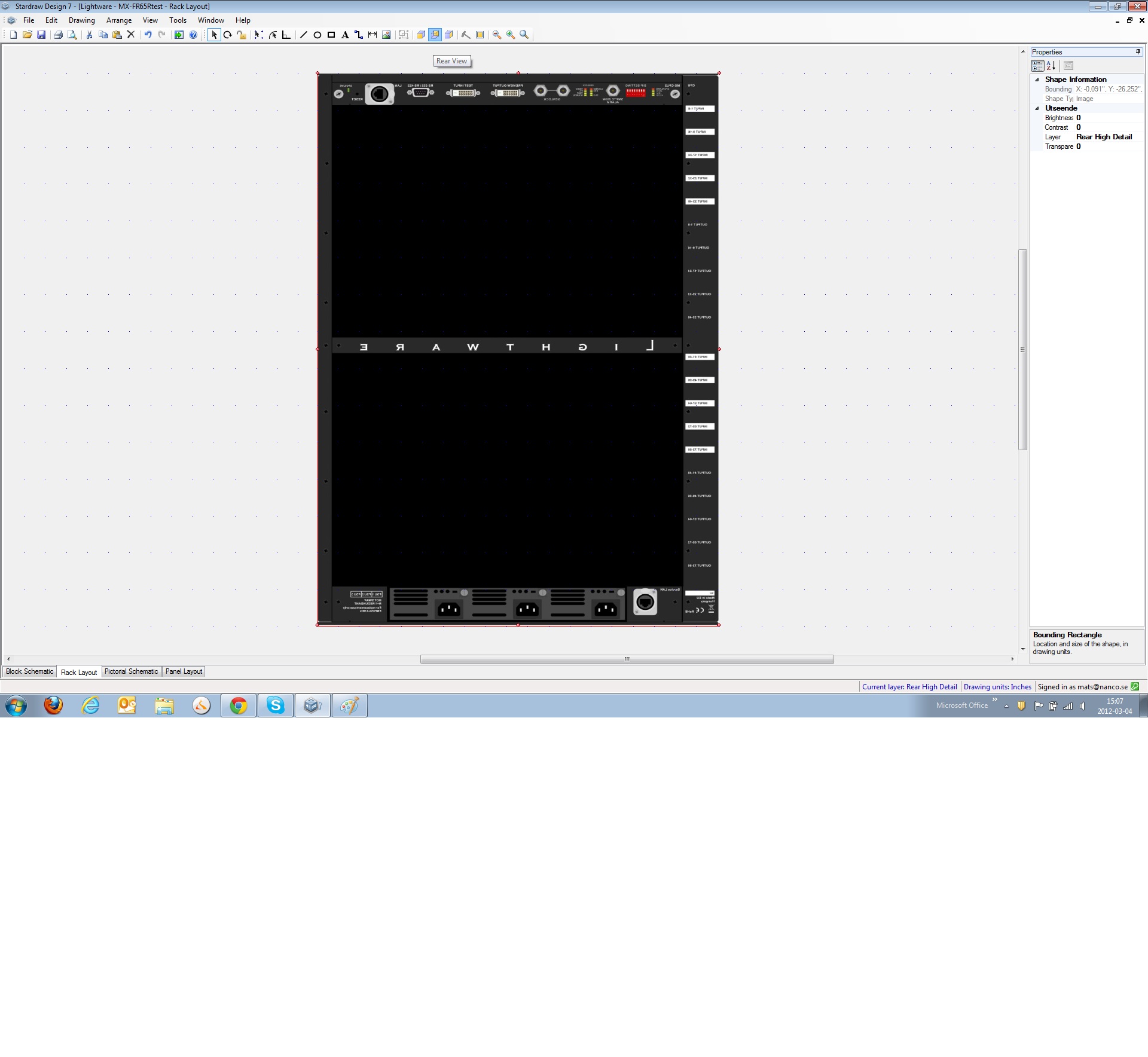 As for showing the front and rear view of a product at the same time; Stardraw AV 2007 can be described as a drawing program with symbols. Stardraw Design 7 is a Project and Product based program that has symbolic representations of the products in different views. This provides much more powerful integration between the drawings and the project. For example, you can delete a product from a project and it will delete the product from all the drawings. Showing the Front & Rear View symbols of a product in the same drawing implies that there are 2 instances of that product in the project. I suspect that you are not trying to represent 2 instances of the product but instead show 2 views of the same product in the same drawing. Do you mind if the rear view of the product is not actually linked to a product? If not, then it should be possible to create a graphical copy of the symbol and just paste it into your drawing - treating it just like an image. We are working on a feature that will allow you to copy a selection as either an image or a metafile that can then be pasted into the same window without it pasting the whole product. For now, you should be able to do this by taking a screenshot - by hitting the Print Screen button and then pasting it into PAINT or some other image editing software and cropping out the parts you don't want and then saving it as a PNG file, which you can then insert, using the image tool, back into your Rack Drawing. I know this isn't ideal as it is a raster image but it will give you what you want now.